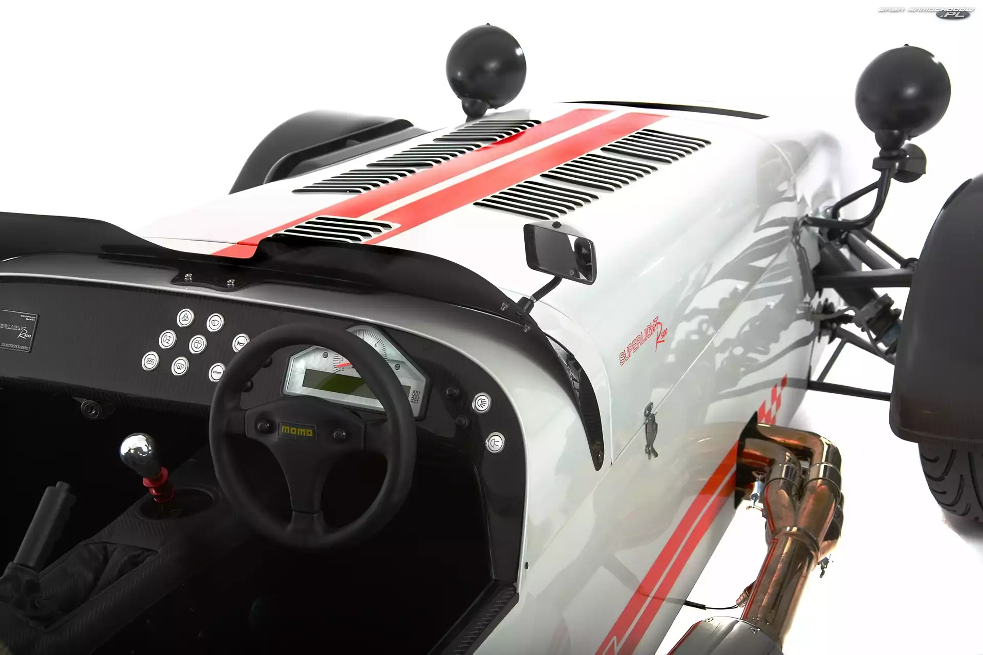 Caterham Superlight, R500 CC Caterham Seria R, Kierownica, Logo 260, Caterham Seria, CSR Caterham Seria R, Lewa, Strona Mat, Caterham Seria R, Czarny Momo, Caterham, Kierownica Chłodnica, Przód, Caterham Konsola, Caterham Seria R Caterham Seria R, Czerwony V8, Przód, Caterham Statek, Prezentacja, Caterham Seria R Caterham, Dealer Caterham Super Light R 500 Reflektory, Caterham Seria R