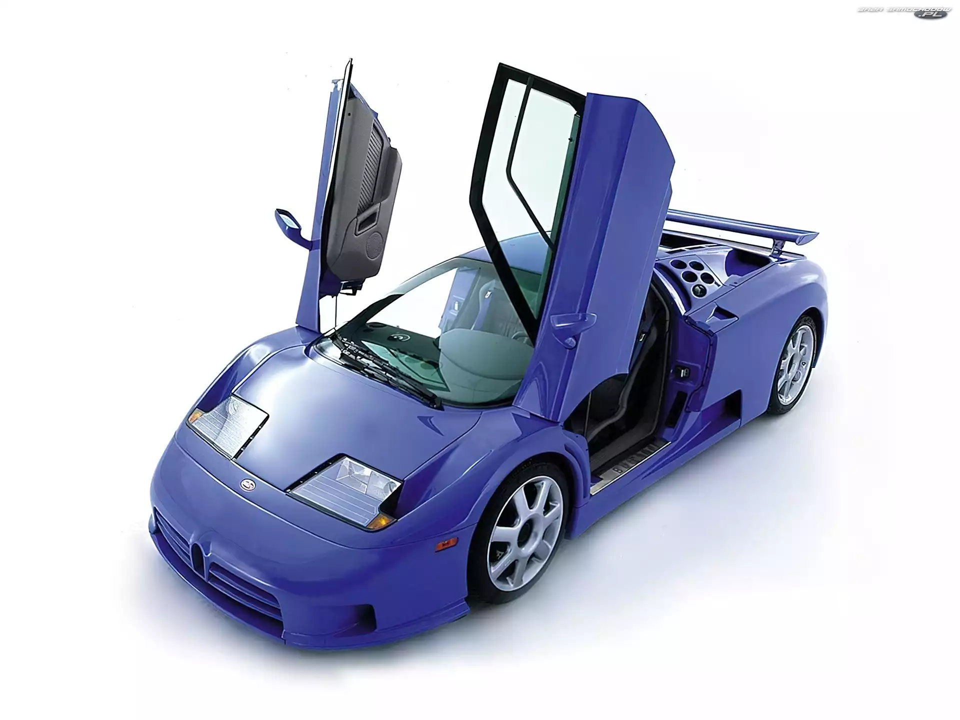 Reflektory, Bugatti EB 110, Maska Bugatti EB 110, Niebieski Bugatti, EB 110 Bugatti EB 110, Niebieskie Drzwi, Bugatti EB 110, Uniesione Bugatti EB 110 Rajdowy, Bugatti EB 110, Samochód Maska, Przód, Bugatti EB 110 Tył, Bugatti EB 110